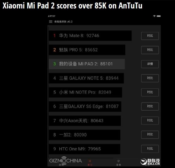 [아시아경제 이창환 기자] 샤오미의 최신 태블릿인 미패드2가 안투투 벤치마크테스트(BMT)에서 상당히 높은 평가점수를 받았다. 30일 외신에 따르면 미패드2는 안투투 벤치마크테스트에서 8만5101점을 기록했다. 이는 엑시노스 7420을 탑재한 삼성 갤럭시 노트5의 8만3944점보다 높은 점수다. 삼성 갤럭시 노트5와 같이 엑시노스 7420을 탑재한 중국의 스마트폰 제조사 메이주가 만든 메이주 프로5의 8만5652점보다는 소폭 낮은 수치다. 화웨이가 독자개발한 기린 950 칩셋을 탑재한 화웨이의 메이트8이 9만2746점으로 1위였다. 샤오미는 지난 24일 중국 베이징 국립컨벤션센터에서 새 스마트폰 홍미노트3와 함께 미패드2를 선보였다.미패드2는 인텔 아톰 X5-Z8500 프로세서와 샤프가 생산한 7.9인치 2048x1536(326ppi) 디스플레이, 2기가바이트(GB) 램, 800만 화소 후면 카메라(전면 500만 화소), 6190밀리암페어아워(mAh) 배터리 등을 갖췄다. 전작인 미패드가 엔비디아 테그라 K1 프로세서를 사용한 것과 달리 미패드2는 인텔 프로세서를 탑재했다. 메탈 소재를 채용했음에도 전작인 미패드에 비해 두께는 얇아졌고 무게는 가벼워졌다. 16기가바이트 버전의 경우 156달러 정도면 구입할 수 있으며 64기가바이트 버전은 203달러 정도다. 색상은 다크그레이와 샴페인골드 2가지가 있다. 단 윈도10을 적용한 제품은 64기가바이트 모델에만 해당하며 이 모델은 다음달 말에 출시될 예정이다. 이창환 기자 goldfish@asiae.co.kr<ⓒ세계를 보는 창 경제를 보는 눈, 아시아경제(www.asiae.co.kr) 무단전재 배포금지>