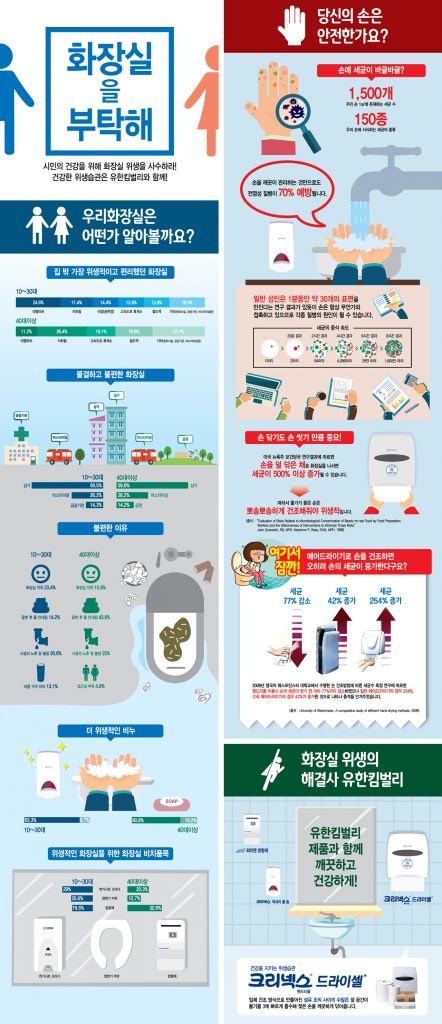 [아시아경제 조강욱 기자] 서울시민 10명 중 6명은 상가건물 내 화장실을 위생상 최악으로 꼽았다.30일 유한킴벌리가 화장실문화시민연대와 함께 서울시민 1000명을 대상으로 실시한 '화장실 위생실태 및 만족도 조사'에 따르면 위생적으로 불편한 화장실은 청소년·청년·직장인 층이 많이 찾는 학원가나 피씨방, 호프집 등이 위치한 상가 건물들의 화장실로 전체 응답자 중 59.5%의 시민이 불편하다고 응답했다. 이어 버스터미널 화장실 26.2%, 공공기관 14.3% 순으로 나타났다. 가장 불편함을 느낀 이유로는 화장실 악취가 1위로 꼽혔으며(23.4%), 2위는 노후 및 불량(20.6%), 3위는 용변 후 물 안 내림(14.2%), 4위는 비품 미비, 지리적 접근성 불편의 순으로 조사되었다. 특히 고체비누와 액체비누의 선호도 조사에서는 93.9%의 시민이 액체비누를 위생적으로 선호하는 것으로 나타나기도 했다. 위생적인 화장실 문화를 위해서 가장 중요한 것은 시민의식이 47.5%로 응답했으며, 올바른 관리 24.3%, 시설부분 14.9% 순으로 조사되었다. 특히, 화장실 이용 후 손씻기 여부에 대한 조사에서는 남성의 30%, 여성의 20%가 손을 씻지 않는 것으로 나타나 올바른 위생습관이 더욱 필요한 것으로 조사되었다. 표혜령 화장실문화시민연대 대표는 "이번 공공 화장실 위생 실태조사는 화장실 위생 캠페인의 일환으로 진행됐다"면서 "조사를 통해 시민들의 불편사항을 고민하는 계기가 될 뿐 아니라 시민들의 위생에 대한 의식도 고취되길 바란다"고 말했다. 조강욱 기자 jomarok@asiae.co.kr<ⓒ세계를 보는 창 경제를 보는 눈, 아시아경제(www.asiae.co.kr) 무단전재 배포금지>