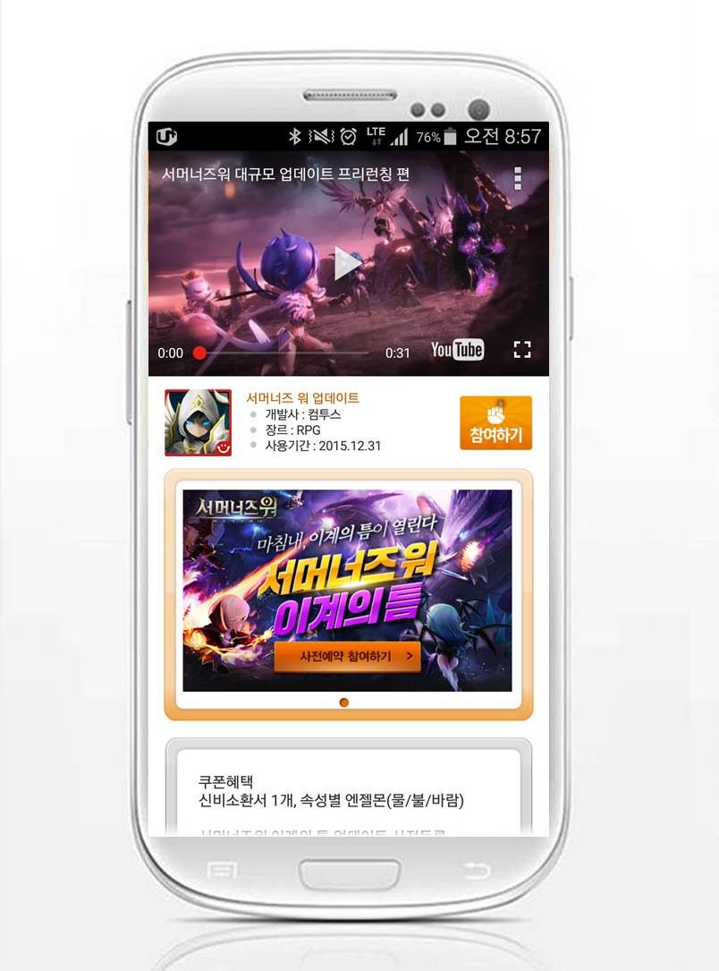 [아시아경제 온라인이슈팀] 모바일 게임 커뮤니티 헝그리앱이 출시한 사전등록 1위 어플리케이션 ‘모비’가 신규 무료쿠폰을 추가했다. ‘모비’에서 제공하는 무료 게임 쿠폰은 한정 수량으로 파격적인 혜택을 지급하고 있기 때문에 유저들로부터 큰 호응을 얻고 있다.30일 새롭게 추가된 쿠폰은 지난 24일부터 대규모 콘텐츠 ‘이계의 틈’ 업데이트에 앞서 사전 예약 이벤트를 시작한 글로벌 인기 RPG ‘서머너즈워:천공의 아레나(이하 서머너즈워)’의 사전등록 쿠폰으로 쿠폰을 등록하면 평소에는 받을 수 없는 파격적인 게임 아이템과 캐시를 지급한다.컴투스의 ‘서머너즈워’가 준비한 이번 '이계의 틈' 업데이트에서는 기존의 전투 시스템과 차별화된 '월드 보스' 전투와 실시간 '레이드' 전투가 추가될 예정이며, 몬스터 코스튬 시스템 및 새로운 방식의 몬스터 육성 시스템을 선보여 재미를 더한다. 또한, 향후 2016년에도 장기적으로 ‘이계의 틈’ 신규 던전, 새로워진 PVP 콘텐츠 '아레나' 등 다양한 콘텐츠를 지속적으로 추가할 예정이다. 쿠폰 등록자 전원에게는 신비소환서 한 개와 물, 불, 바람 등 속성별 엔젤몬세 마리를 특전으로 지급한다.‘모비’에는 이밖에도 ‘이로아스’, ‘히트’, ‘슈퍼판타지워’, ‘고스트’ 등의 신작 게임 사전등록 쿠폰과 ‘난투’, ‘뮤오리진’, ‘엔젤스톤’, ‘클래시오브킹즈’, ‘원더5마스터즈’, ‘갓오브하이스쿨’, ‘러스티블러드’, ‘크로스서머너’ 등의 무료 쿠폰 등 수백가지 게임의 쿠폰을 손쉽게 받을 수 있어 유저들의 입소문을 타면서 쿠폰 소진율이 급증해 일부 쿠폰은 조기 매진되는 등 인기를 끌고 있다.‘모비’는 주요 메뉴를 원터치로 조작할 수 있는 편의성을 앞세운 것이 특징으로, 회원 가입, 사전등록 참여, 게임쿠폰 발급, 쿠폰 나눔 등을 모두 한 번의 클릭으로 가능하도록 구현했다.온라인이슈팀 issue@asiae.co.kr<ⓒ세계를 보는 창 경제를 보는 눈, 아시아경제(www.asiae.co.kr) 무단전재 배포금지>