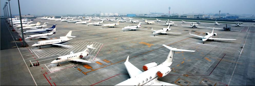 중국 서우두공항 내 자리잡은 비즈니스 지원시설에 주기된 비즈니스제트기.