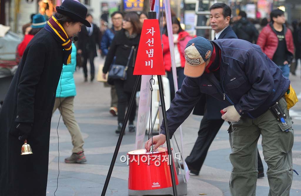 [아시아경제 백소아 기자] 1일 서울 중구 명동거리에서 한 건설노동자가 구세군 자선냄비에 기부를 하고 있다. 한국 구세군 자선냄비본부는 이날부터 70억원을 목표 모금액으로 전국 450여 곳에서 모금 활동을 시작한다.백소아 기자 sharp2046@asiae.co.kr<ⓒ세계를 보는 창 경제를 보는 눈, 아시아경제(www.asiae.co.kr) 무단전재 배포금지>