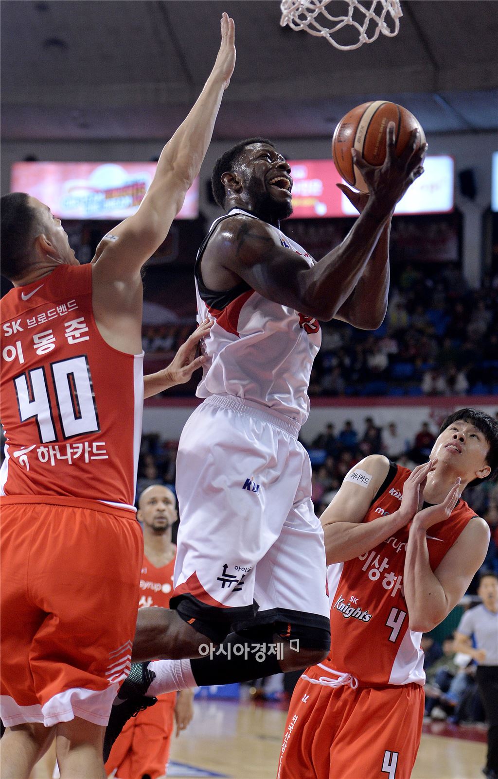 [잠실=아시아경제 김현민 기자] 2015-2016 프로농구 서울 SK와 안양 KGC의 경기가 1일 잠실학생체육관에서 열렸다. KGC 마리오가 상대 수비를 뚫고 공격하고 있다. 김현민 기자 kimhyun81@asiae.co.kr<ⓒ세계를 보는 창 경제를 보는 눈, 아시아경제(www.asiae.co.kr) 무단전재 배포금지>