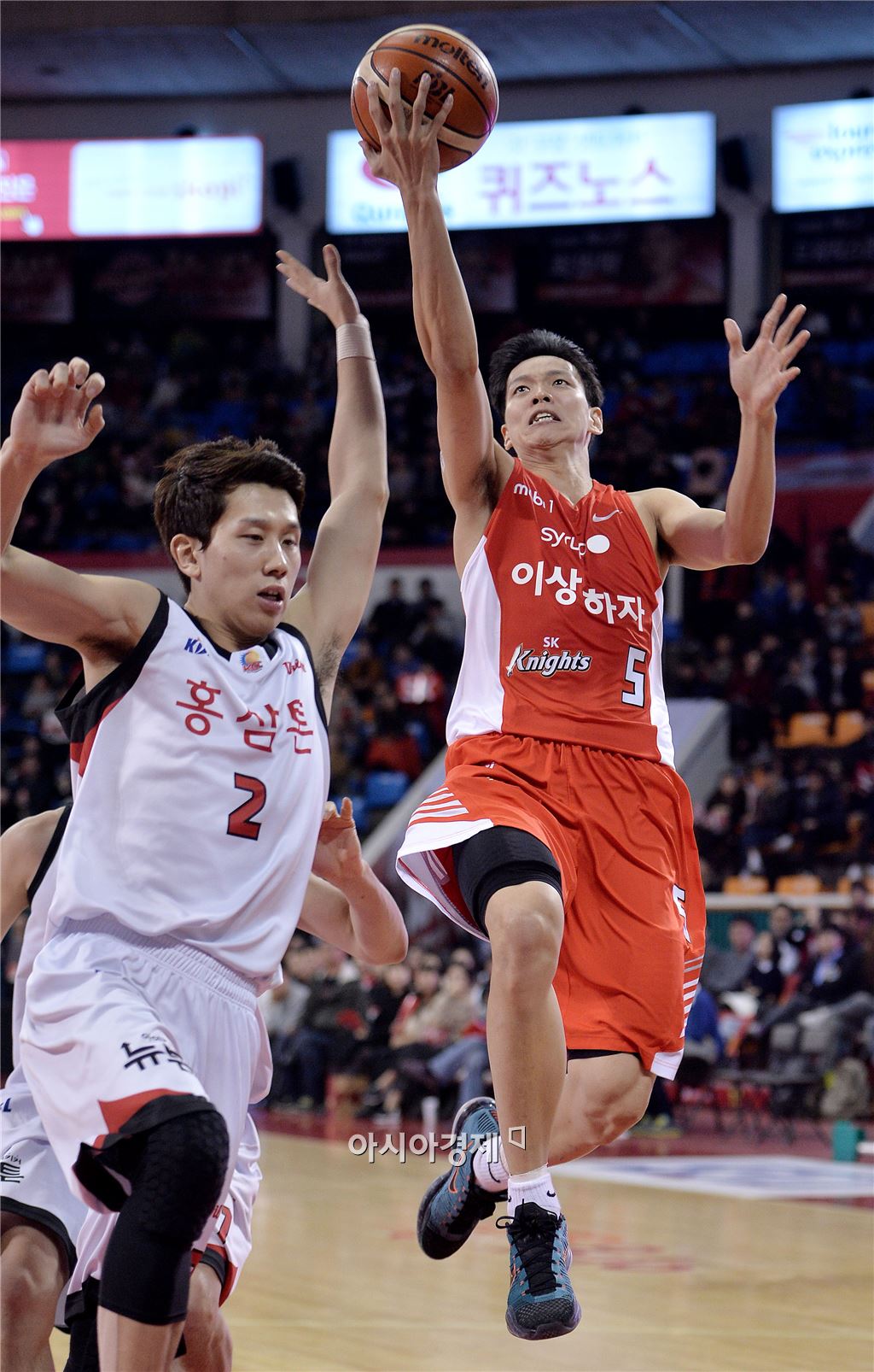 [잠실=아시아경제 김현민 기자] 2015-2016 프로농구 서울 SK와 안양 KGC의 경기가 1일 잠실학생체육관에서 열렸다. SK 김선형이 상대 수비를 뚫고 공격하고 있다. 김현민 기자 kimhyun81@asiae.co.kr<ⓒ세계를 보는 창 경제를 보는 눈, 아시아경제(www.asiae.co.kr) 무단전재 배포금지>