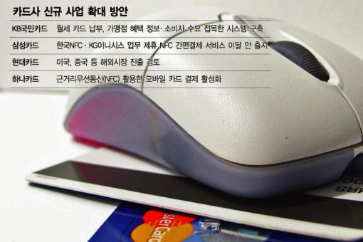 -월세 카드납부 방안 검토, 美中 등 신시장 진출로 맞대응-스마트폰 NFC 결제 '비씨페이' 클럽 탑재 등 모바일 사업 강화[아시아경제 이현주 기자] 카드업계가 인터넷전문은행 출현에 바짝 긴장하고 있다. 가맹점 카드수수료 인하로 가뜩이나 수익성 악화를 우려하는 상황에서 또 다른 암초를 만난 것이다. 카드업계는 신사업 확대와 해외 진출, 모바일 사업 강화를 통한 위기 탈출을 꾀하고 있다.2일 금융업계에 따르면 은행업 예비인가를 받은 K뱅크와 카카오뱅크는 신용카드업을 수행하기 위해 겸영여신업자 허가도 조만간 받을 것으로 예상된다. 신용카드업을 전문으로 하는 여신전문업자와 달리 은행업무와 함께 신용카드업을 수행할 때는 겸영여신업자로 허가를 받아야 한다. 마침 금융당국은 겸영여신업자 요건을 완화할 방침이다. 기존에는 30개 이상의 점포와 300명 이상의 임직원을 고용해야만 허가를 내줬다. 금융위 관계자는 "점포가 없는 인터넷전문은행의 특수성을 고려해 인가 요건의 예외를 인정하기로 했다"고 말했다.카드업계가 우려하는 것은 중금리 대출과 지불 결제다. 인터넷전문은행이 노리는 중금리 대출 시장은 카드업계의 장기카드대출(카드론)과 단기카드대출(현금서비스)에 영향을 미친다. 여신금융협회에 공시된 상품별 수수료율에 따르면 신용카드사 카드론과 현금서비스의 수수료 구간은 연 5.9%부터 27.5%까지다. 수수료는 신용카드사들이 취하는 수입인 만큼 금리로 이해해도 된다. 이런 상황에서 인터넷전문은행이 10% 초반대 대출 상품을 내놓는다면 카드사들은 고객을 빼앗길 수 있다. 카드업계 관계자는 "카드사의 카드론과 현금서비스를 이용하는 고객 중 일부가 인터넷전문은행으로 이동할 가능성을 배제할 수 없다"고 말했다.인터넷전문은행의 지불 결제도 카드사에는 위협적이다. K뱅크와 카카오뱅크가 내놓은 청사진을 보면, 가맹점에서 물건을 구매하거나 유료 디지털 콘텐츠를 사용할 때 수수료 없는 결제 서비스를 제공할 것으로 보인다. '수수료 제로(0)'는 기존 카드사의 사업권에 있던 가맹점의 이탈을 낳는다. 금융권 관계자는 "인터넷전문은행이 겸영여신업자가 된다는 것은 신용카드사와 경쟁을 의미한다"며 "카드사들이 가맹점 인프라에서 우위를 점하고 있지만 수수료 부문에서는 인터넷전문은행이 대단히 위협적인 존재임은 분명하다"고 말했다. 일각에서는 내년부터 카드 가맹점 수수료가 낮춰지는 만큼 인터넷전문은행의 공세가 무뎌질 것이라는 관측도 제기됐다.카드업계는 인터넷전문은행이 내년 하반기부터 사업을 본격적으로 시작할 것으로 대응전략을 서둘러 시행할 방침이다. 수익 창출이 기대되는 신사업을 지속적으로 확대하고 해외 진출을 꾀하는 한편 모바일 사업을 강화하는 것이다. KB국민카드는 월세를 카드로 납부하는 방안을 검토 중이다. 또 고객이 가맹점에 방문했을 때 가격할인 등의 정보를 실시간으로 전달하는 시스템도 구축하고 있다. 현대카드는 미국과 중국 등 해외 신시장에 신용카드 사업 진출을 검토하고 있다. 현대카드 관계자는 "미국은 카드결제가 가장 활발히 일어나는 쇼핑몰들이 밀집해 있고, 또 결제 관련 회사들이 대부분 위치하고 있다"며 "중국도 세계 최대의 시장"이라고 말했다. 스마트폰을 활용한 오프라인 결제 활성화에 주력하는 곳도 있다. BC카드는 스마트폰 근거리무선통신(NFC) 결제 서비스인 '비씨페이'를 '클립'에 탑재했다. 클립은 신용카드를 한 곳에 모아 저장하는 일종의 '스마트 지갑'으로 가맹점에서 받을 수 있는 최적의 혜택을 알려준다. 클립에서 신용카드를 선택하고 바로 결제까지 할 수 있다. 삼성카드는 한국 NFC·KG이니시스와 업무 제휴를 맺고 NFC 간편결제 서비스를 이달 중 출시한다. 하나카드 역시 실물 없는 모바일 카드 보급과 NFC 결제 가맹점 확대에 주력하고 있다.이현주 기자 ecolhj@asiae.co.kr<ⓒ세계를 보는 창 경제를 보는 눈, 아시아경제(www.asiae.co.kr) 무단전재 배포금지>이현주 기자 ecolhj@asiae.co.kr<ⓒ아시아 대표 석간 '아시아경제' (www.newsva.co.kr) 무단전재 배포금지>