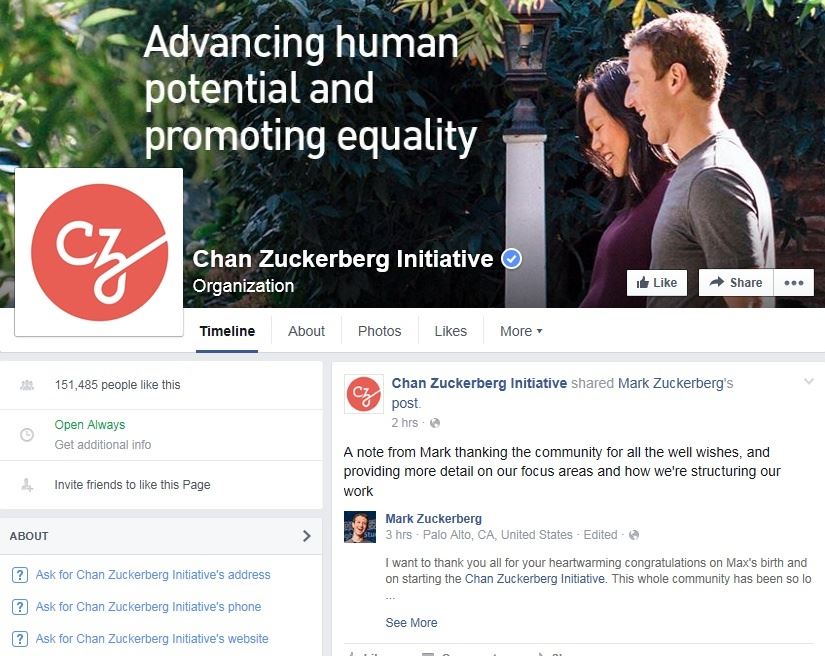 ▲'챈 주커버그 이니셔티브' 페이스북 페이지