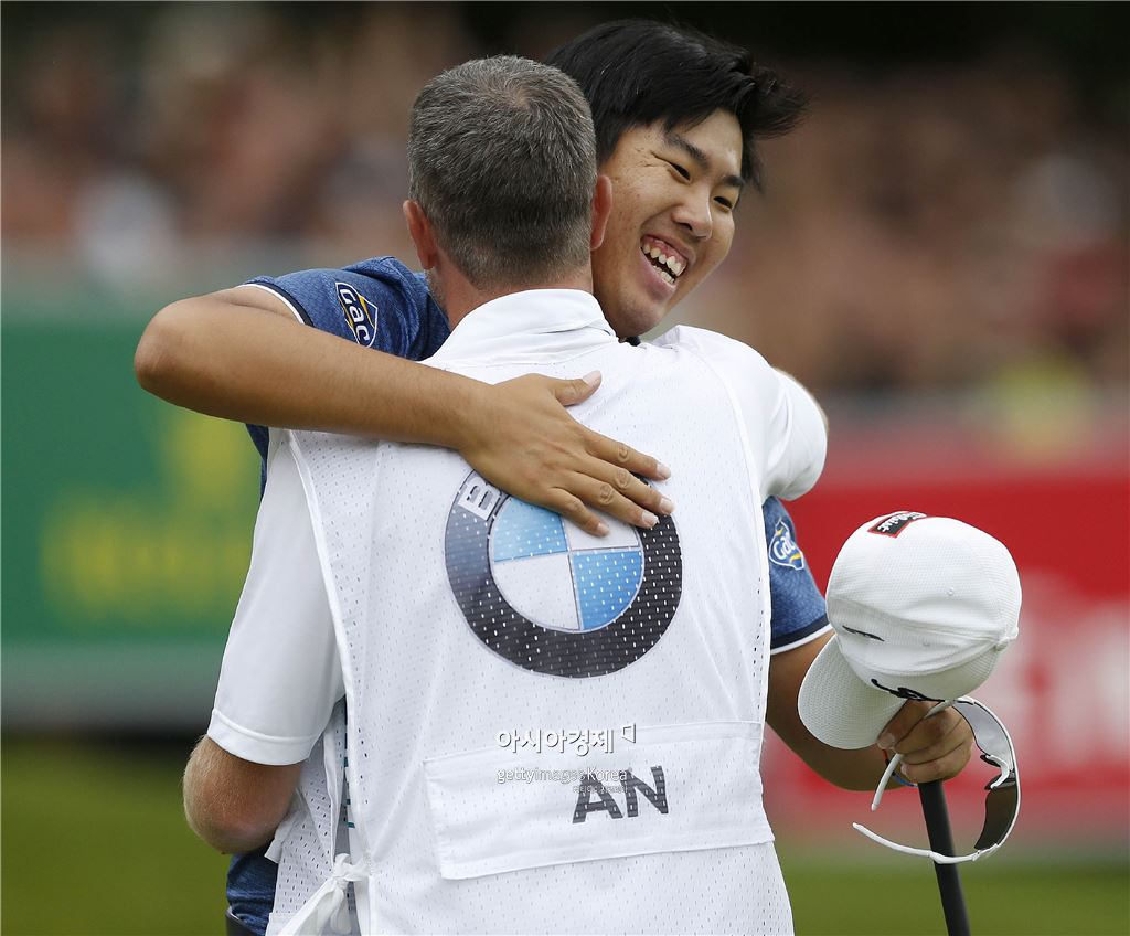 안병훈이 지난 5월 BMW PGA챔피언십 우승 당시 캐디와 기쁨을 나누고 있는 장면. 사진=Getty images/멀티비츠