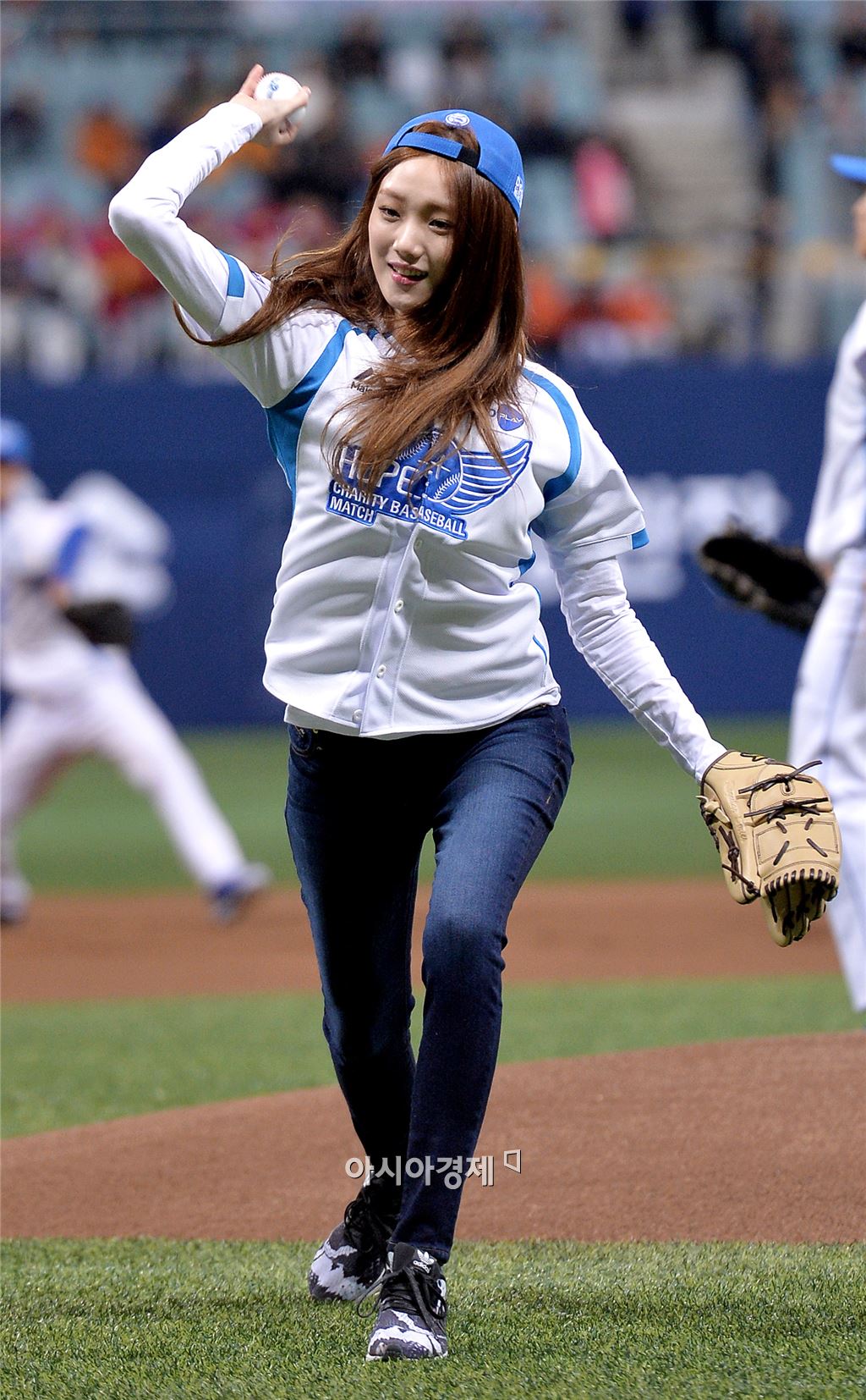 [고척=아시아경제 김현민 기자] 2015 희망더하기 자선 야구대회가 6일 고척스카이돔에서 열렸다. 배우 이성경이 시구를 하고 있다. 김현민 기자 kimhyun81@asiae.co.kr<ⓒ세계를 보는 창 경제를 보는 눈, 아시아경제(www.asiae.co.kr) 무단전재 배포금지>