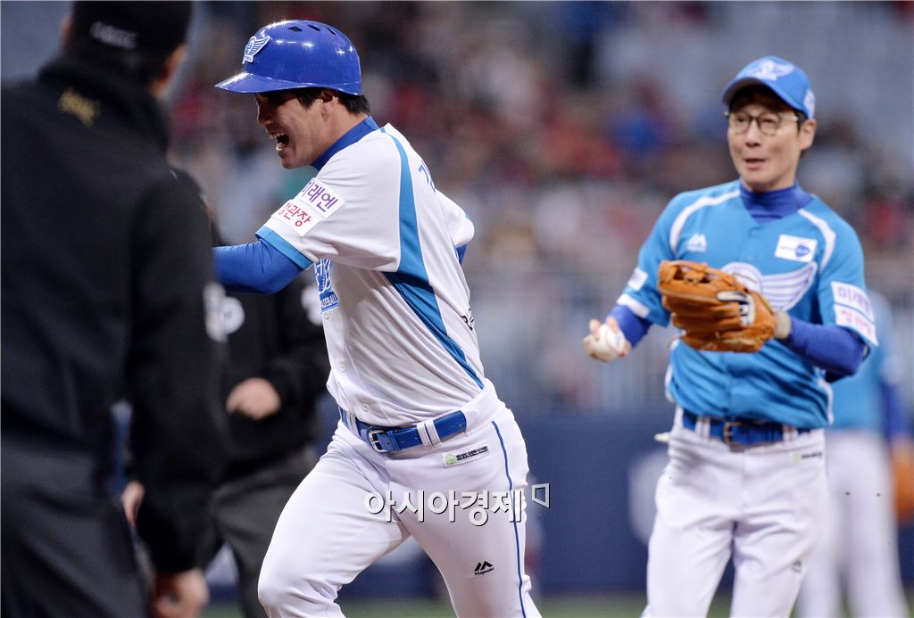 [고척=아시아경제 김현민 기자] 2015 희망더하기 자선 야구대회가 6일 고척스카이돔에서 열렸다. 양신 팀 1루주자 김광현이 런다운에 걸려 이휘재의 태그를 피해 달리고 있다. 김현민 기자 kimhyun81@asiae.co.kr<ⓒ세계를 보는 창 경제를 보는 눈, 아시아경제(www.asiae.co.kr) 무단전재 배포금지>