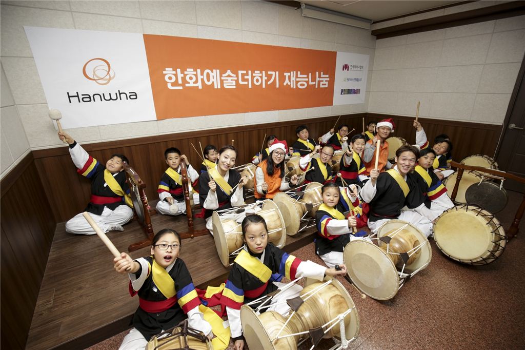 한화예술더하기는 전통문화 체험 기회가 적은 청소년·어린이들에게 우리 문화를 배우고 익힐 수 있는 기회를 제공하기 위해 7년째 운영되고 있다. 한화그룹 임직원들이 기금의 50%를 기부하고, 나머지 50%를 회사에서 지원하고 있다. 초등학생과 한화그룹 직원들은 지난 4월부터 전국 20개 지역에서 매주 한 번씩 전문강사들에게 가야금, 사물놀이 등 전통악기 연주나 서예, 민화 등 전통예술을 배워왔다. 올해 초부터 시작한 전통문화예술사업은 2017년까지 3년 동안 진행된다. 기존 저소득층이나 복지시설 아동을 주 대상으로 했던 것과 달리 일반 초등학생 어린이로 대상을 확대했다. 한화예술더하기는 연간 60회 이상 진행될 예정이다. 전국의 시·도 교육청, 초·중·고교, 아동복지시설 등에서 신청 가능하다. 자세한 내용은 한화예술더하기 홈페이지(www.artplus.or.kr)에서 확인할 수 있다.김혜민 기자 hmeeng@asiae.co.kr<ⓒ세계를 보는 창 경제를 보는 눈, 아시아경제(www.asiae.co.kr) 무단전재 배포금지>