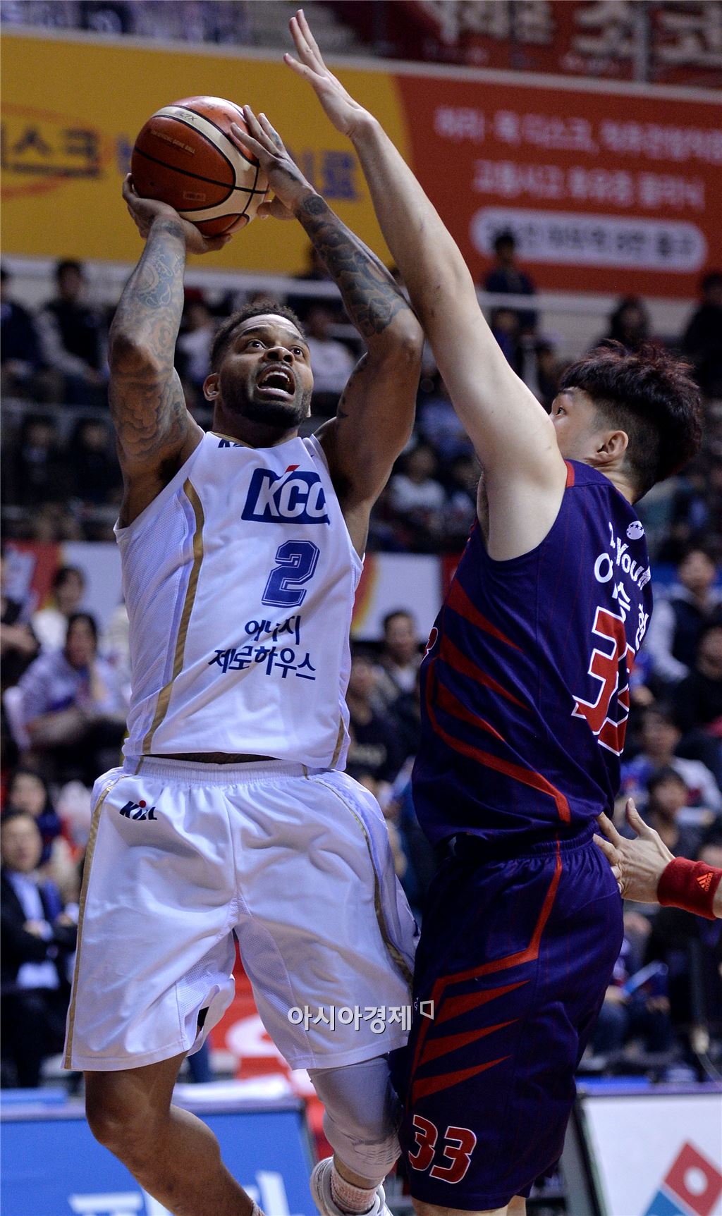 [고양=아시아경제 김현민 기자] 2015-2016 프로농구 고양 오리온과 전주 KCC의 경기가 9일 고양체육관에서 열렸다. KCC 에밋이 상대 수비를 뚫고 공격하고 있다. 김현민 기자 kimhyun81@asiae.co.kr<ⓒ세계를 보는 창 경제를 보는 눈, 아시아경제(www.asiae.co.kr) 무단전재 배포금지>
