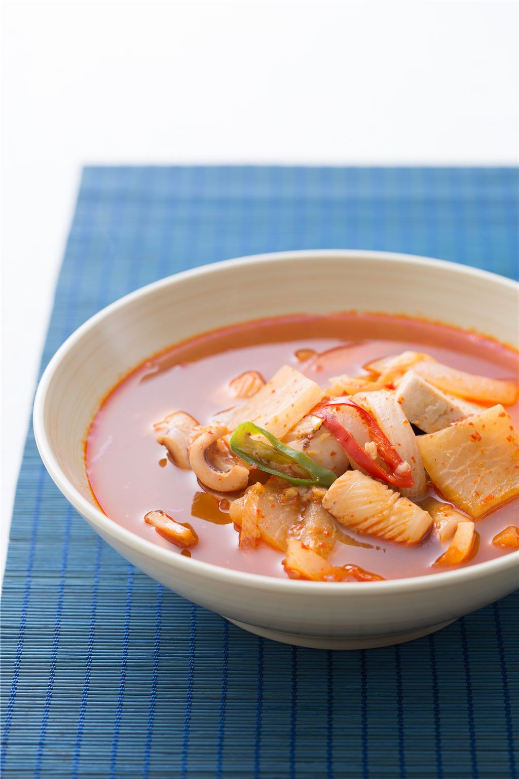 주재료(2인분) 무 100g, 두부 1/2모, 양파 1/4개, 대파 1/4대, 홍고추, 풋고추 1/3개씩, 오징어 1마리, 물 3컵, 소금ㆍ후춧가루 약간씩양념 재료 고추장 1, 고춧가루 1.5, 액젓 1, 다진 마늘 1, 참기름 1만들기▶ 요리 시간 30분과정 1