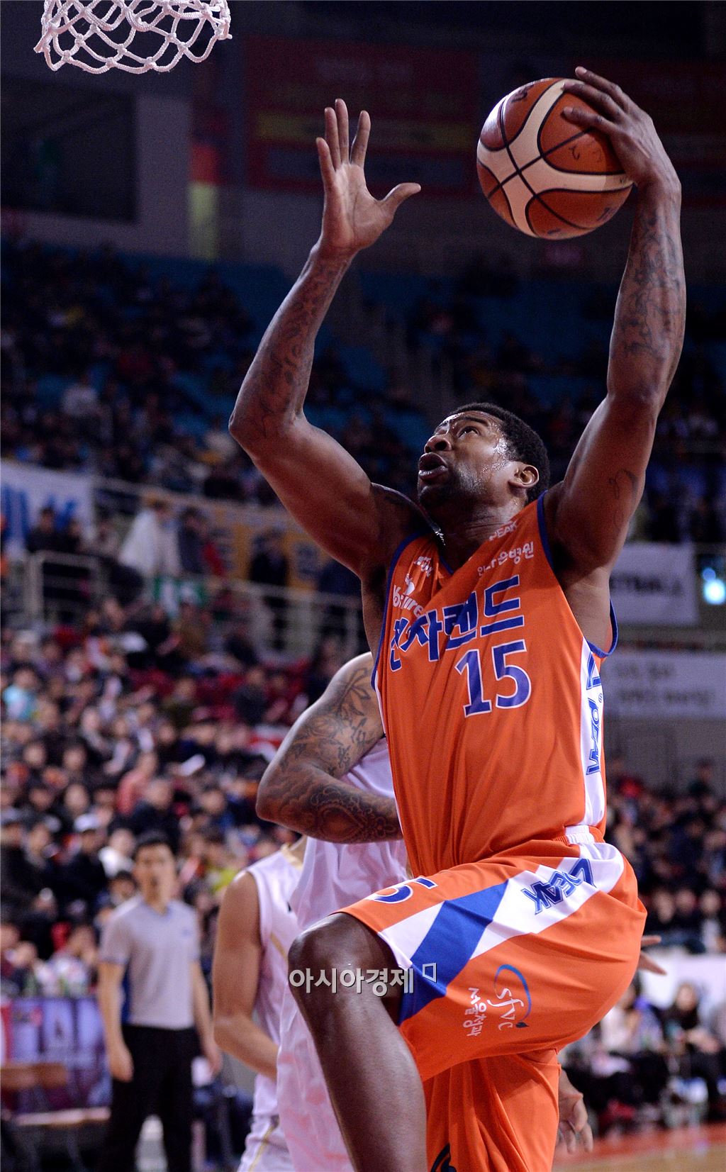 [인천=아시아경제 김현민 기자] 2015-2016 프로농구 인천 전자랜드와 전주 KCC의 경기가 13일 인천 삼산월드체육관에서 열렸다. 전자랜드 포웰이 상대 수비를 뚫고 공격하고 있다. 김현민 기자 kimhyun81@asiae.co.kr<ⓒ세계를 보는 창 경제를 보는 눈, 아시아경제(www.asiae.co.kr) 무단전재 배포금지>