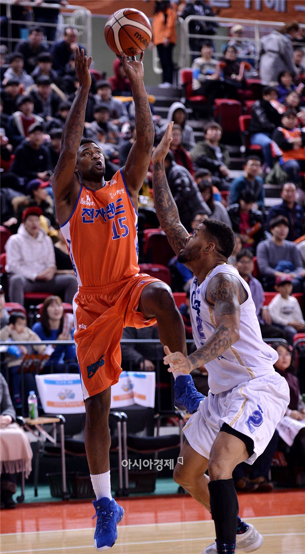 [인천=아시아경제 김현민 기자] 2015-2016 프로농구 인천 전자랜드와 전주 KCC의 경기가 13일 인천 삼산월드체육관에서 열렸다. 전자랜드 포웰이 상대 수비를 뚫고 공격하고 있다. 김현민 기자 kimhyun81@asiae.co.kr<ⓒ세계를 보는 창 경제를 보는 눈, 아시아경제(www.asiae.co.kr) 무단전재 배포금지>