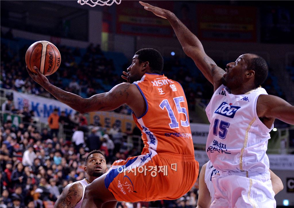 [인천=아시아경제 김현민 기자] 2015-2016 프로농구 인천 전자랜드와 전주 KCC의 경기가 13일 인천 삼산월드체육관에서 열렸다. 전자랜드 포웰이 상대 수비를 뚫고 공격하고 있다. 김현민 기자 kimhyun81@asiae.co.kr<ⓒ세계를 보는 창 경제를 보는 눈, 아시아경제(www.asiae.co.kr) 무단전재 배포금지>