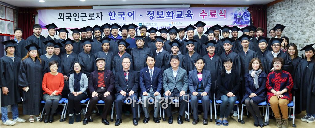 광주외국인력지원센터(공동운영기관 대표 김윤세·이주성)는 13일 광주외국인력지원센터에서 외국인근로자 한국어·정보화교육과정 수료식과 2015년 송년행사를 실시했다.<br />