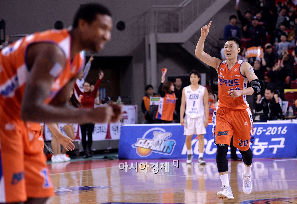 [인천=아시아경제 김현민 기자] 2015-2016 프로농구 인천 전자랜드와 전주 KCC의 경기가 13일 인천 삼산월드체육관에서 열렸다. 전자랜드 정영삼이 3점슛을 성공시킨 뒤 기뻐하고 있다. 김현민 기자 kimhyun81@asiae.co.kr<ⓒ세계를 보는 창 경제를 보는 눈, 아시아경제(www.asiae.co.kr) 무단전재 배포금지>