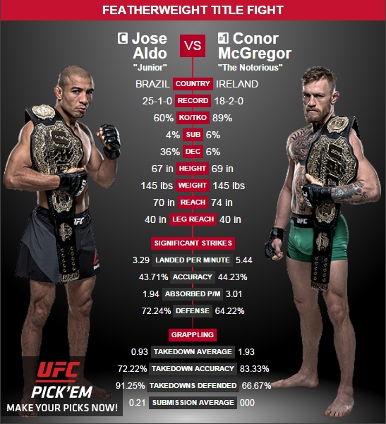 UFC 194에서 대결한 조제 알도와 코너 맥그리거 / 사진= UFC 홈페이지 캡처