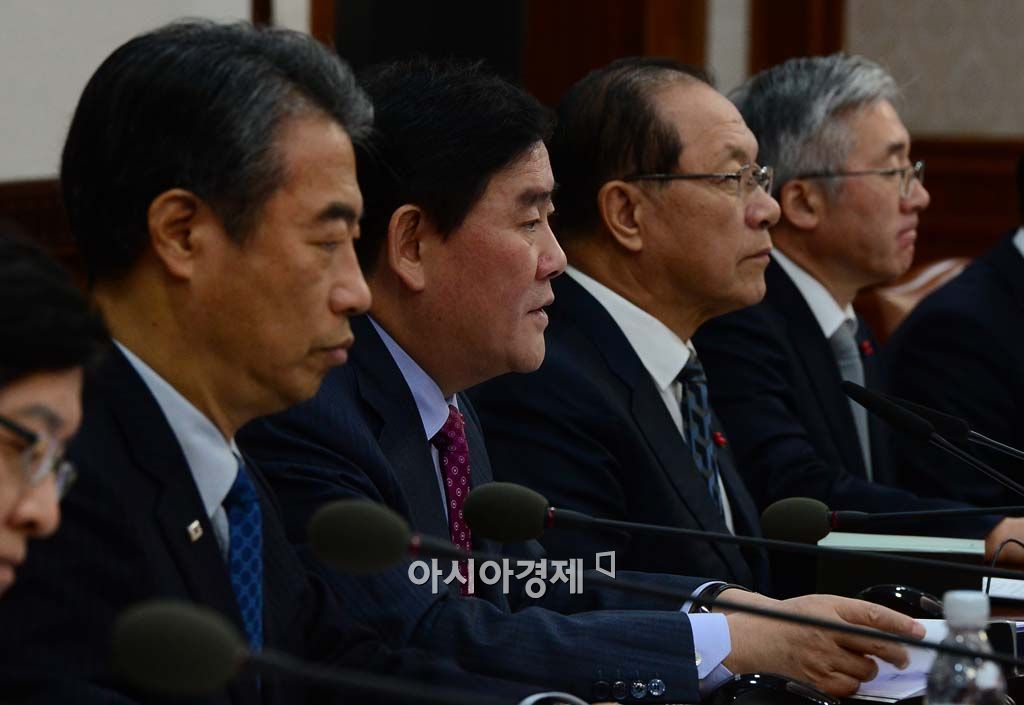 [아시아경제 백소아 기자] 최경환 경제부총리(왼쪽부터 두 번째)가 15일 서울 세종로 정부서울청사에서 열린 국무회의를 주재하고 있다. 정종섭 행장부 장관, 최 부총리, 황우여 사회부총리, 김종덕 문화체육관광부 장관(왼쪽부터)백소아 기자 sharp2046@asiae.co.kr<ⓒ세계를 보는 창 경제를 보는 눈, 아시아경제(www.asiae.co.kr) 무단전재 배포금지>