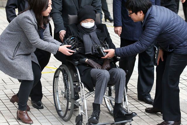 [서울=연합뉴스] 이재현 CJ그룹 회장이 15일 오후 서초동 서울고등법원에서 열린 파기환송심 선고공판을 마치고 법원을 나서고 있다. 법원은 수백억원대 횡령 및 조세포탈 혐의로 기소된 이 회장에게 징역2년 6개월의 실형을 선고했다.<저작권자 ⓒ 1980-2015 ㈜연합뉴스. 무단 전재 재배포 금지.>