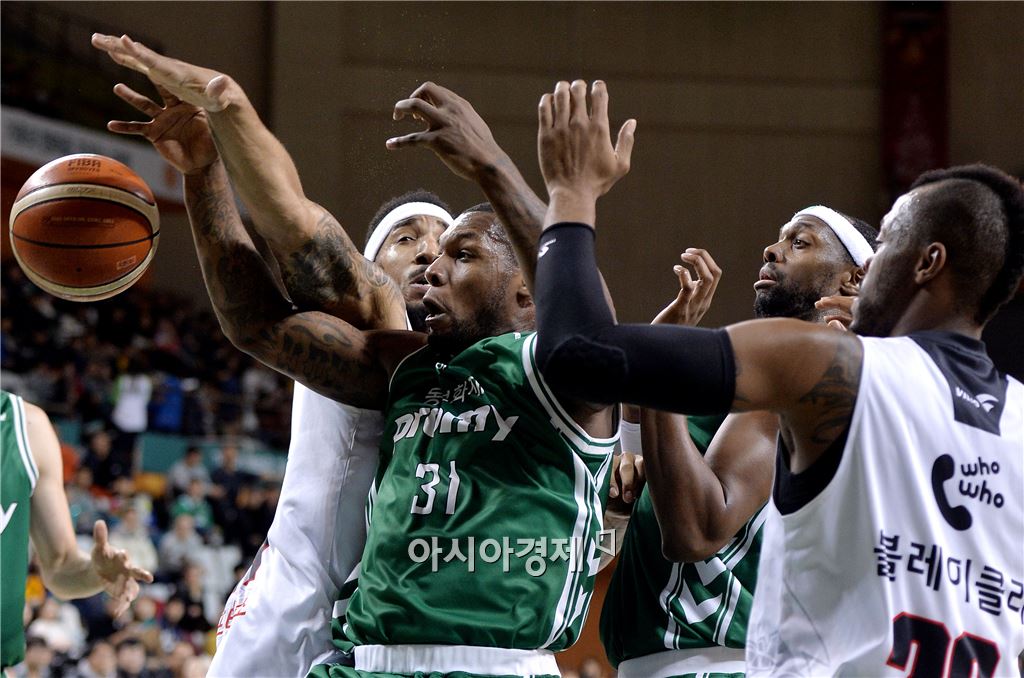 [원주=아시아경제 김현민 기자] 2015-2016 프로농구 원주 동부와 부산 kt의 경기가 16일 원주종합체육관에서 열렸다. 동부 맥키네스가 상대 심스와 공을 다투고 있다. 김현민 기자 kimhyun81@asiae.co.kr<ⓒ세계를 보는 창 경제를 보는 눈, 아시아경제(www.asiae.co.kr) 무단전재 배포금지>