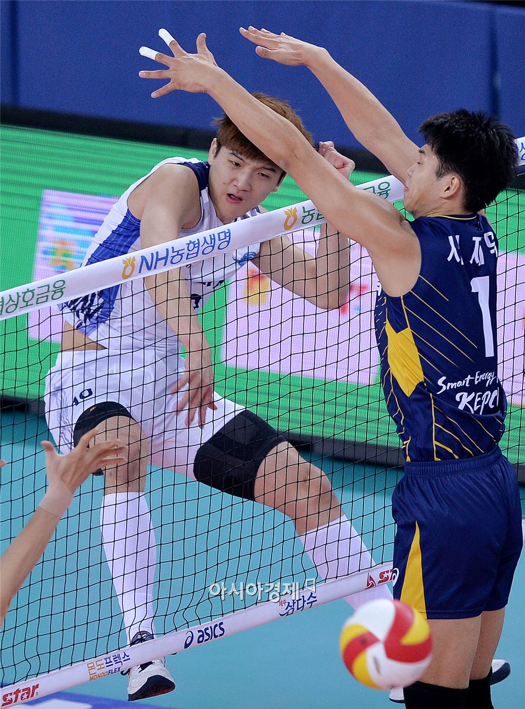 C|02[인천=아시아경제 김현민 기자] 프로배구 2015-2016 V리그 남자부 대한항공과 한국전력의 경기가 17일 인천 계양체육관에서 열렸다. 대한항공 정지석이 상대 블로킹을 뚫고 공격하고 있다. 김현민 기자 kimhyun81@asiae.co.kr<ⓒ세계를 보는 창 경제를 보는 눈, 아시아경제(www.asiae.co.kr) 무단전재 배포금지>김현민 사진기자 kimhyun81@asiae.co.kr<ⓒ아시아 대표 석간 '아시아경제' (www.newsva.co.kr) 무단전재 배포금지>