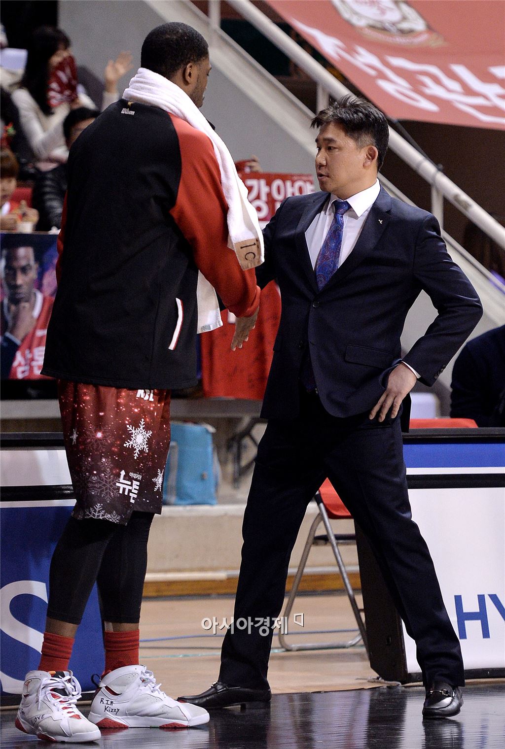 [안양=아시아경제 김현민 기자] 2015-2016 프로농구 안양 KGC인삼공사와 고양 오리온의 경기가 18일 안양실내체육관에서 열렸다. KGC 로드가 90-78 승리를 확정한 뒤 김승기 감독대행과 인사하고 있다. 김현민 기자 kimhyun81@asiae.co.kr<ⓒ세계를 보는 창 경제를 보는 눈, 아시아경제(www.asiae.co.kr) 무단전재 배포금지>
