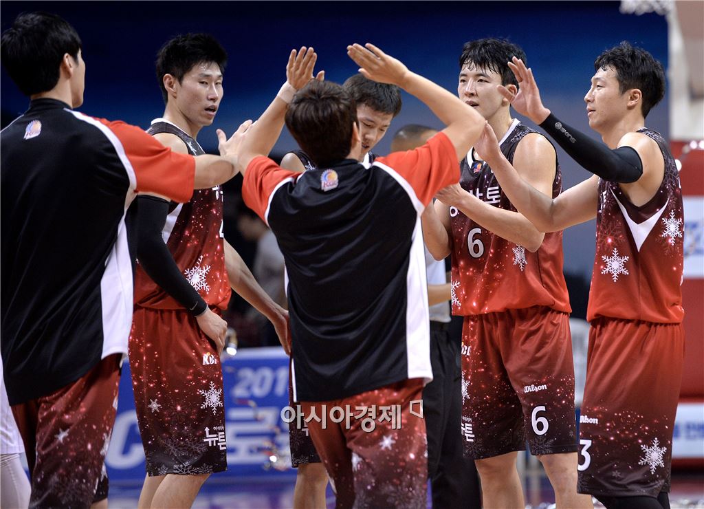 [안양=아시아경제 김현민 기자] 2015-2016 프로농구 안양 KGC인삼공사와 고양 오리온의 경기가 18일 안양실내체육관에서 열렸다. KGC 선수들이 90-78 승리를 확정한 뒤 자축하고 있다. 김현민 기자 kimhyun81@asiae.co.kr<ⓒ세계를 보는 창 경제를 보는 눈, 아시아경제(www.asiae.co.kr) 무단전재 배포금지>