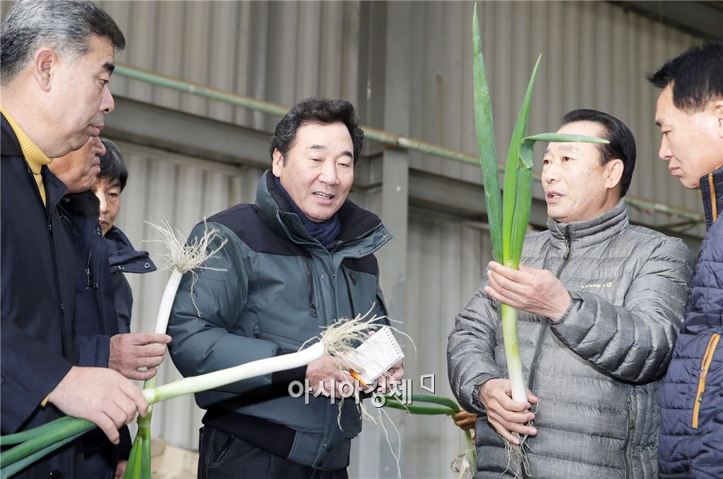 이낙연 전남지사는 19일 신안군 임자도를 방문, 대파 재배단지와 가공 현장을 둘러보고 농업인들을 격려했다. 임흥빈 도의원, 송경일 신안부군수, 정태실 임자농협조합장, 김광수 임자대파연구회 회장이 동행했다. 사진제공=전남도