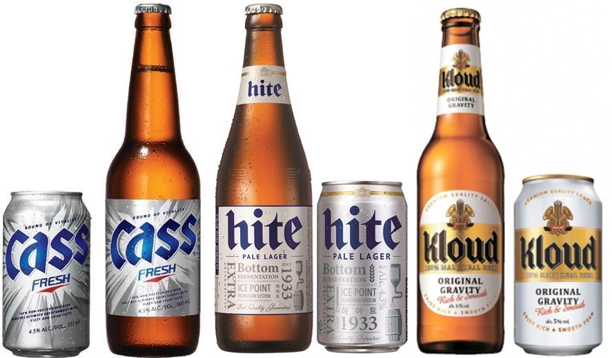 왼쪽부터)오비맥주 '카스', 하이트진로 '뉴하이트', 롯데주류 '클라우드'