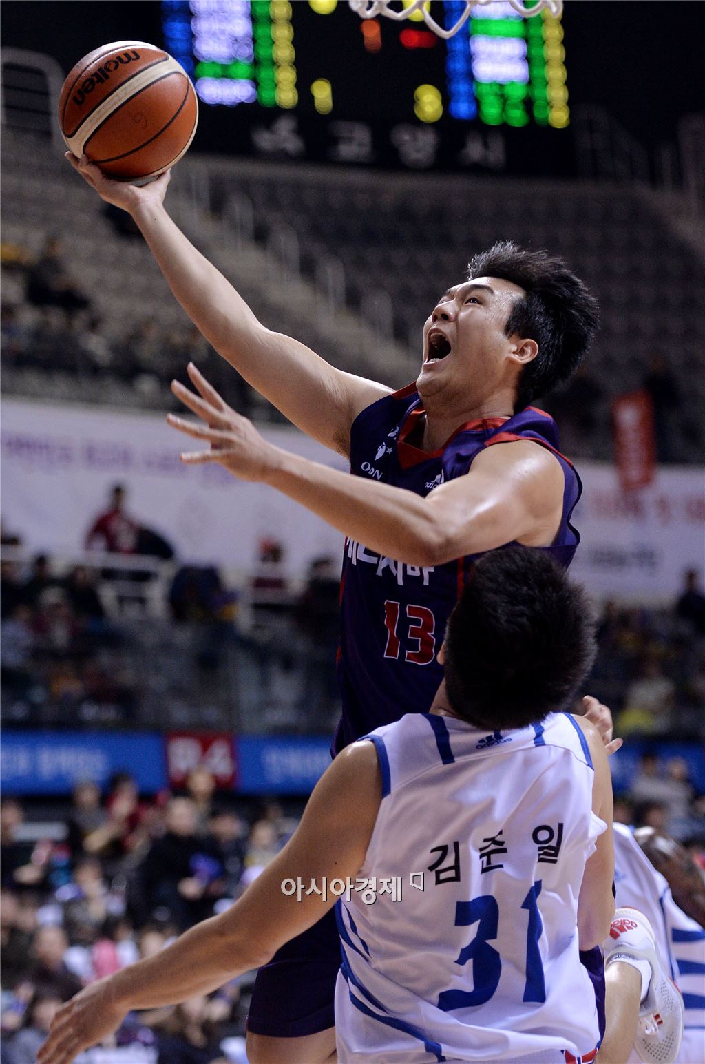 [고양=아시아경제 김현민 기자] 2015-2016 프로농구 고양 오리온과 서울 삼성의 경기가 23일 고양체육관에서 열렸다. 오리온 김동욱이 상대 수비를 뚫고 슛하고 있다. 김현민 기자 kimhyun81@asiae.co.kr<ⓒ세계를 보는 창 경제를 보는 눈, 아시아경제(www.asiae.co.kr) 무단전재 배포금지>