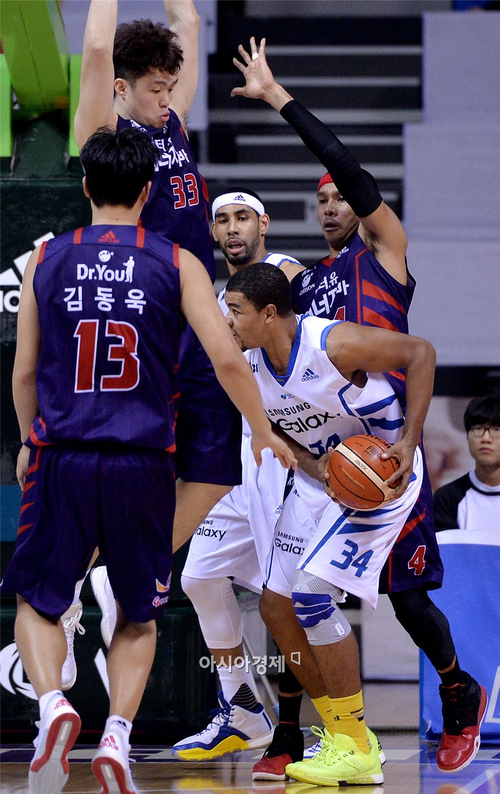 [고양=아시아경제 김현민 기자] 2015-2016 프로농구 고양 오리온과 서울 삼성의 경기가 23일 고양체육관에서 열렸다. 삼성 와이즈가 상대 수비에 막혀 고전하고 있다. 김현민 기자 kimhyun81@asiae.co.kr<ⓒ세계를 보는 창 경제를 보는 눈, 아시아경제(www.asiae.co.kr) 무단전재 배포금지>