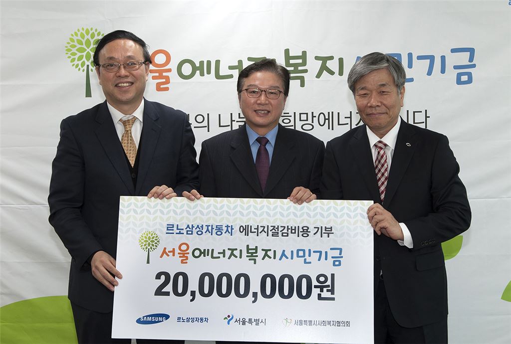 우측부터 르노삼성 오직렬 부사장,서울시 사회복지협의회 유종국 부회장, 서울시 유재룡 기후환경본부장