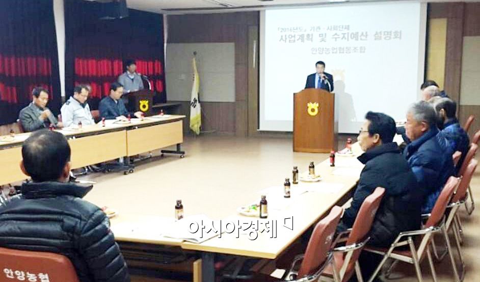 장흥군 안양농협(김영중 조합장)은 지난 17일 지역 기관·사회단체장, 영농회장이 참석한 가운데 ‘2016년 안양농협 사업계획 설명회’를 가졌다. <br />