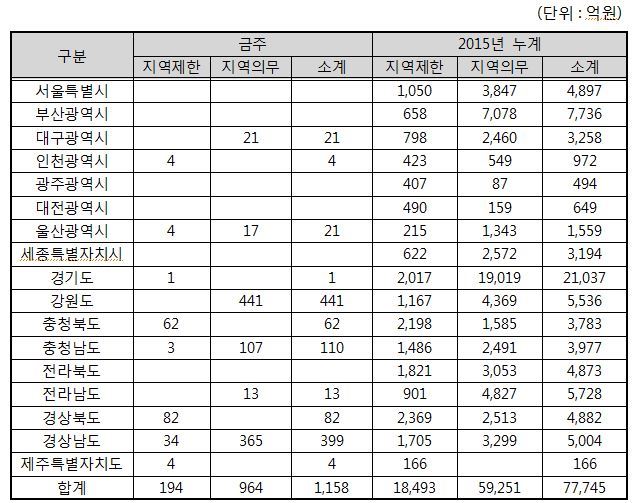 지역별 지역제한/지역의무공동도급 현황 자료. 조달청 제고