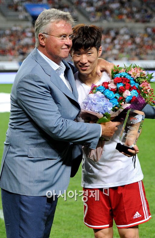 히딩크 감독과 박지성, 사진=김현민 기자