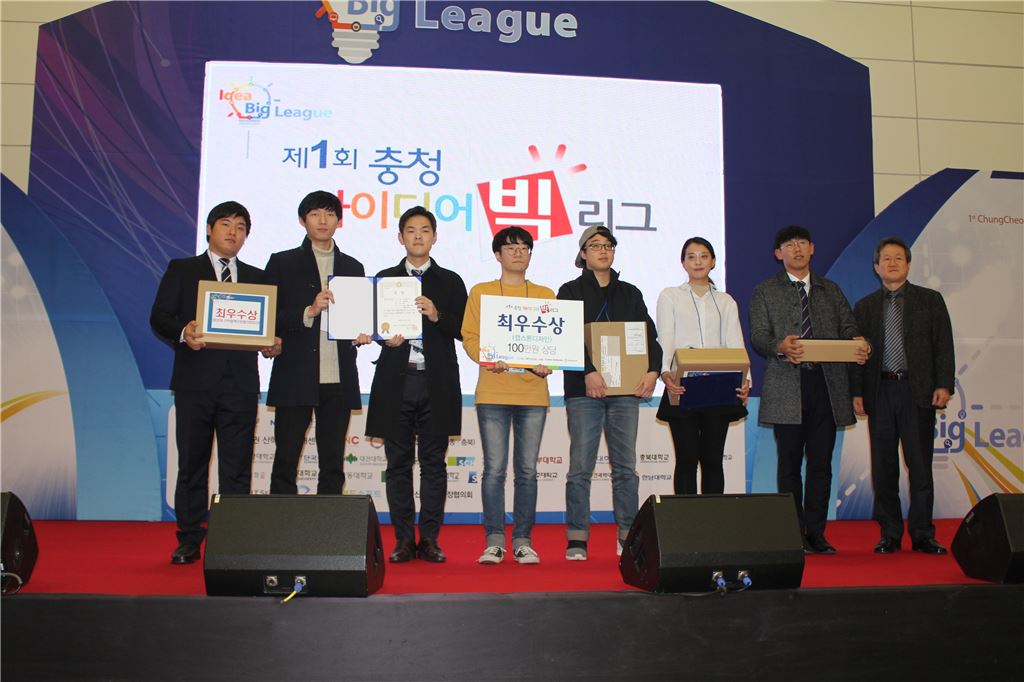 한밭대 일본어과 ‘Kudara팀’ 구성원들이 충청 아이디어 빅리그 시상식에서 최우수상 수상한 후 기념사진을 찍고 있다. 한밭대 제공