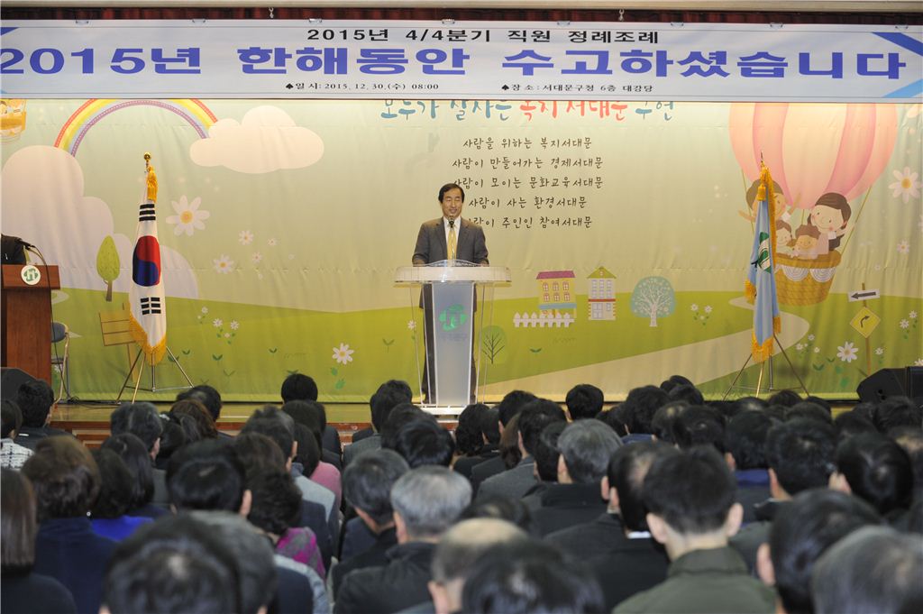 [아시아경제 박종일 기자] 문석진 서대문구청장이 30일 열린 종무식에서 직원들에게 사회현상에 대한 예민한 감수성을 가질 것을 주문해 눈길을 모았다.문 구청장은 “2015년은 서대문 지방정부의 1등 DNA를 확인할 수 있는 한 해였다”며 “이런 자신감을 바탕으로 새해에는 사회현상에 대한 보다 예민한 감수성을 갖고 구가 할 수 있는 몫을 찾아 실천하자”고 직원들에게 당부했다.또 가계부채와 주거빈곤, 청년일자리 등을 예로 들며 “동 복지허브화가 그랬듯 규정과 예산을 뛰어넘어 비전을 갖고 한 문제 한 문제부터 풀어 가면 지방이 중앙을 바꾸는 또 하나의 사례를 만들 수 있을 것”이라고 강조했다.