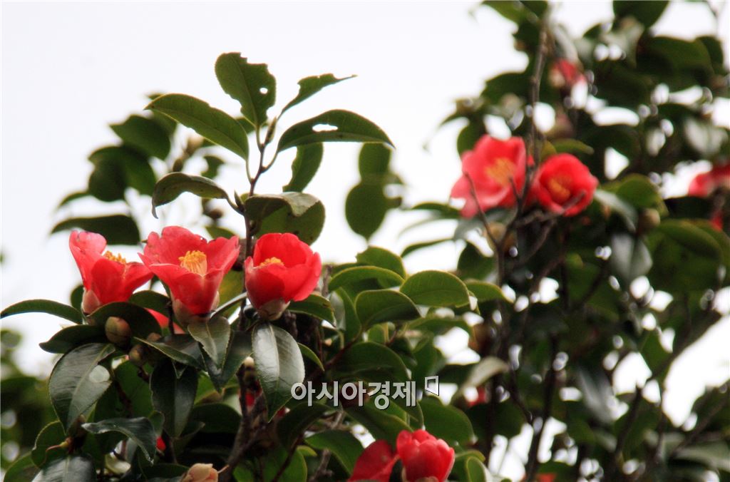 한 해를 마무리하는 31일 한파가 몰아친 가운데 완도군 일대에 새악시 빨간 입술을 연상케 하는 동백꽃이 앞 다퉈 꽃망울을 터트려 시선을 붙잡고 있다. 사진제공=완도군<br />