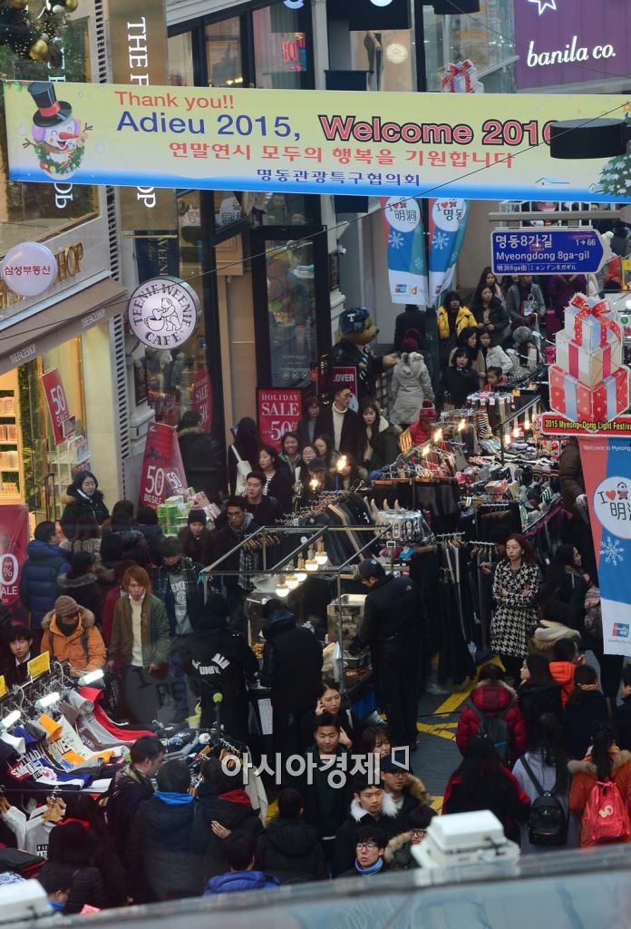 [아시아경제 백소아 기자] 2015년 마지막 날인 31일 서울 중구 명동거리에 연휴를 즐기는 시민들이 북적이고 있다.백소아 기자 sharp2046@asiae.co.kr<ⓒ세계를 보는 창 경제를 보는 눈, 아시아경제(www.asiae.co.kr) 무단전재 배포금지>
