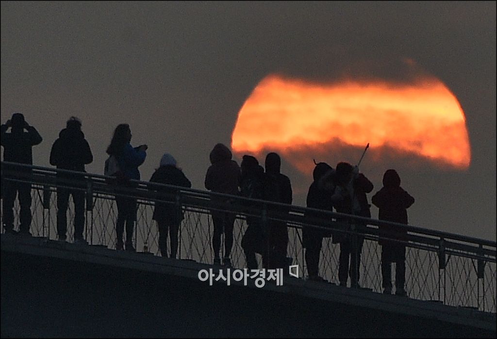 [아시아경제 윤동주 기자] 2016년 첫 일출을 보기 위해 서울 선유도 공원에 모인 시민들이 첫 해돋이를 지켜보고 있다.윤동주 기자 doso7@asiae.co.kr<ⓒ세계를 보는 창 경제를 보는 눈, 아시아경제(www.asiae.co.kr) 무단전재 배포금지>
