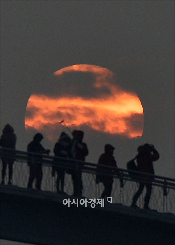 [아시아경제 윤동주 기자] 2016년 첫 일출을 보기 위해 서울 선유도 공원에 모인 시민들이 첫 해돋이를 지켜보고 있다.윤동주 기자 doso7@asiae.co.kr<ⓒ세계를 보는 창 경제를 보는 눈, 아시아경제(www.asiae.co.kr) 무단전재 배포금지>