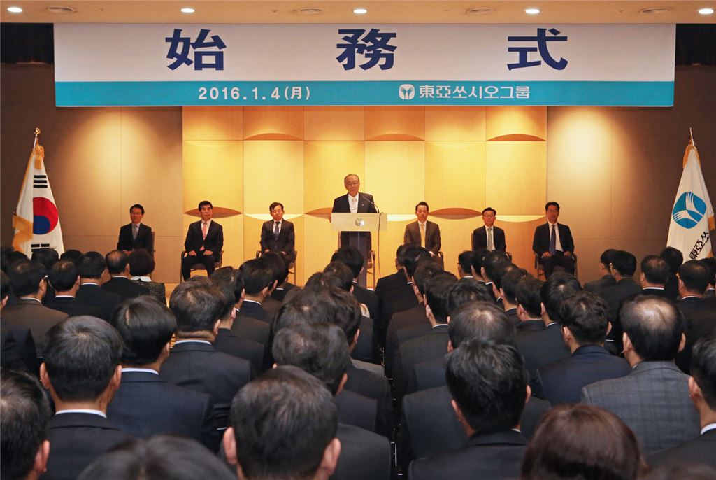 [아시아경제 권용민 기자] 강신호 동아쏘시오그룹 회장이 글로벌 기업으로 도약하기 위한 결의를 다졌다.4일 오전 강 회장은 본사 7층 대강당에서 가진 2016년도 시무식에서 "지주회사로 전환된 이 후 각 사가 전문성을 더했으며, 전체 매출에서도 수출비중이 점점 올라가고 있다"며 "글로벌 기업으로 도약하기 위해 매출의 50% 이상이 해외에서 나오도록 노력하자"고 말했다. 이자리에는 동아에스티, 동아제약 임직원들이 참석했다.그는 "오르막을 오르다 힘들어서 멈추면 얼마 버티지 못 하고 내려가게 되는 것처럼 지금 당장이 어렵다고 해서 현재에 안주한다면 목표로 가는 길은 더욱 멀어진다"며 "마음가짐을 다지고 함께 손 잡고 사력을 다해 올라가자"고 임직원들을 독려했다.이를 위한 동아쏘시오그룹 임직원들의 실천 과제로 ▲능동적인 해외 시장 개척 ▲넓은 인간관계 구축 ▲열정적인 자세를 제시하며 동아쏘시오그룹을 '글로벌 기업'으로 만든다는 신념으로 최선을 다해 주기를 당부했다.한편 작년 한해는 동아쏘시오그룹이 글로벌 기업으로 도약하는 한 해로 평가되고 있다. 슈퍼항생제 ‘시벡스트로’의 영국, 독일 등 유럽 5개국에서의 발매와 자체개발신약인 당뇨병 치료제 ‘슈가논’의 중국, 인도, 러시아, 브라질 등 24개국 기술수출로 글로벌 시장에서 능력을 인정 받았다. 또한, 슈퍼항생제 ‘시벡스트로’와 당뇨병 치료제 ‘슈가논’의 신약 허가 승인으로 국내 최다 신약 보유 회사가 됐다.권용민 기자 festym@asiae.co.kr<ⓒ세계를 보는 창 경제를 보는 눈, 아시아경제(www.asiae.co.kr) 무단전재 배포금지>