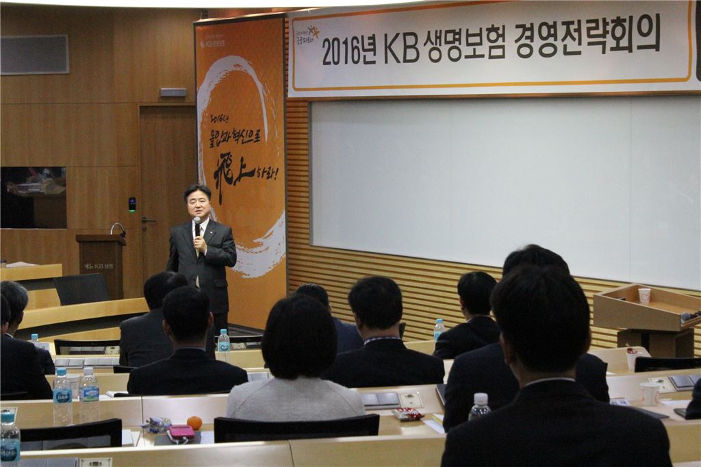 [아시아경제 이은정 기자] 신용길 KB생명보험 사장이 "올해는 업계의 선도기업으로 거듭날 수 있는지 여부를 결정짓는 골든 타임"이라며 임직원들에게 영업 경쟁력 혁신에 총력을 다해달라고 당부했다. 신 사장은 6일 여의도 본사 대강당에서 열린 '2016 경영전략회의'에서 "저성장, 저금리 환경 및 제도 변화 등의 경영환경에 대응하고 고객 신뢰 제고와 영업 경쟁력 강화를 통해 가치성장 기반을 구축해야 한다"며 이같이 강조했다. 본사 경영진 및 부서장, 영업현장관리자 등 총 100여명이 참석한 가운데 열린 2016년 경영전략회의는 작년 경영성과 검토와 올해 경영계획 공유, 본부별 추진 전략 발표, 부서별 변화혁신 추진 과제 발표, 외부 특강 등으로 진행됐다. 신 사장은 이 자리에서 ‘2016년, 몰입과 혁신으로 비상하라!’라는 슬로건을 내걸고 부서 단위로 한 개의 변화혁신 과제를 추진하겠다는 뜻을 밝혔다. 또 구성원 개개인의 끊임없는 변화혁신을 통해 조직의 성장과 발전을 견인하기로 했다. 이은정 기자 mybang21@asiae.co.kr<ⓒ세계를 보는 창 경제를 보는 눈, 아시아경제(www.asiae.co.kr) 무단전재 배포금지>