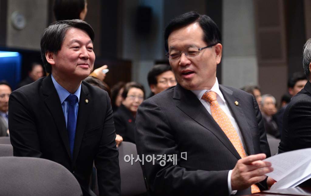 [아시아경제 백소아 기자] 7일 서울 태평로 프레스센터에서 열린 최상용 고려대 명예교수 출판기념회에서 정의화 국회의장(오른쪽)과 안철수 국회의원(왼쪽)이 이야기를 나누고 있다.백소아 기자 sharp2046@asiae.co.kr<ⓒ세계를 보는 창 경제를 보는 눈, 아시아경제(www.asiae.co.kr) 무단전재 배포금지>