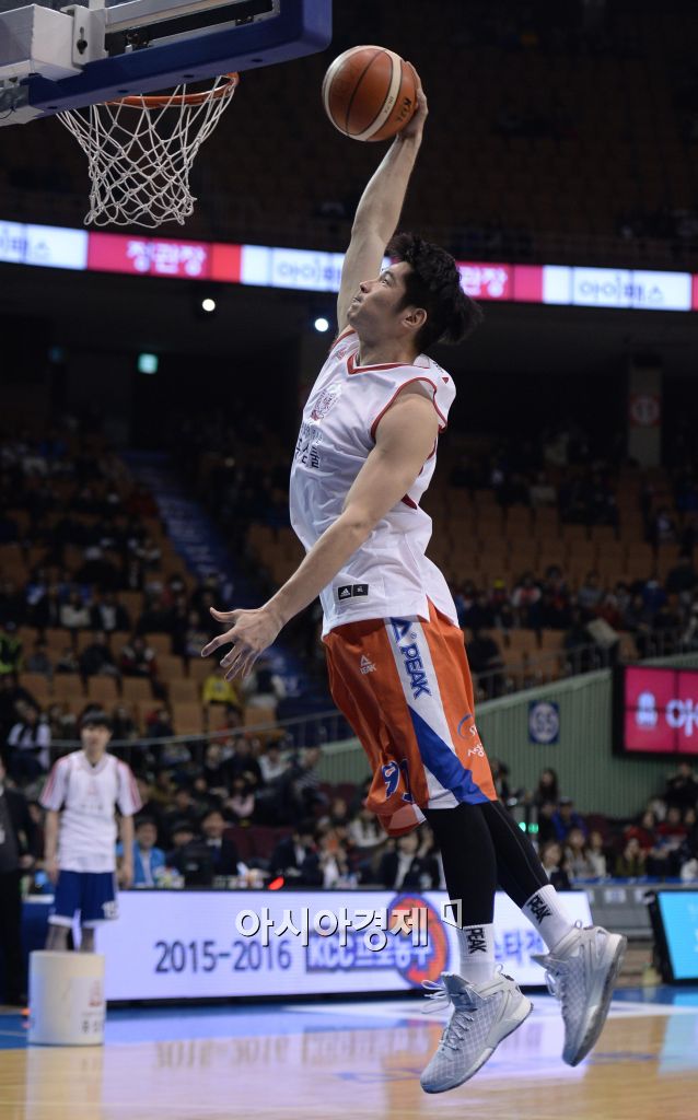 [잠실=아시아경제 김현민 기자] 2015~2016 프로농구 올스타전이 10일 서울 잠실실내체육관에서 열렸다. 본 경기에 앞서 덩크 콘테스트에서 전자랜드 박진수가 호쾌한 덩크를 성공시키고 있다. 김현민 기자 kimhyun81@asiae.co.kr<ⓒ세계를 보는 창 경제를 보는 눈, 아시아경제(www.asiae.co.kr) 무단전재 배포금지>