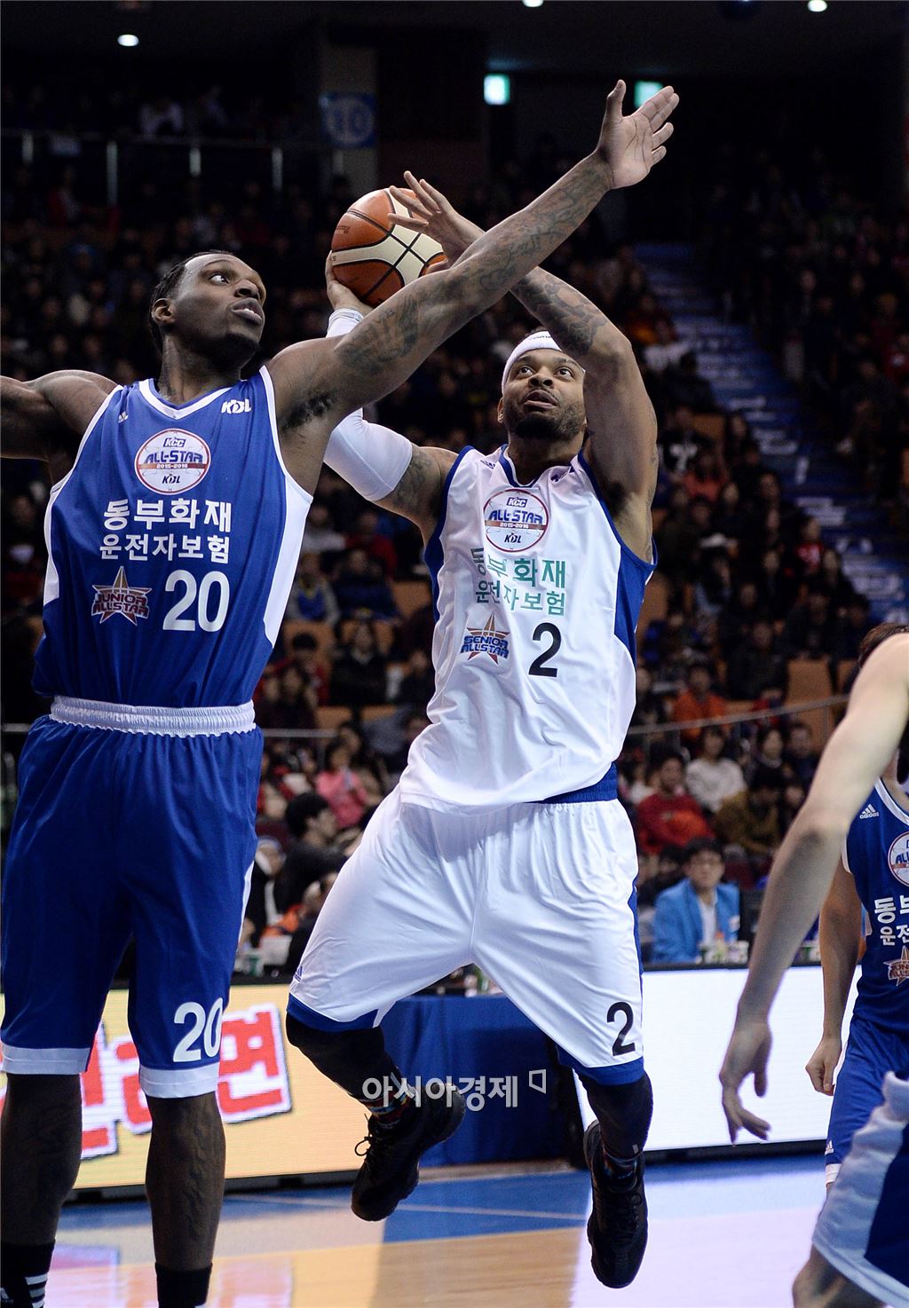 [잠실=아시아경제 김현민 기자] 2015~2016 프로농구 올스타전이 10일 서울 잠실실내체육관에서 열렸다. 시니어올스타 에밋이 주니어올스타 라틀리프의 수비를 뚫고 슛하고 있다. 김현민 기자 kimhyun81@asiae.co.kr<ⓒ세계를 보는 창 경제를 보는 눈, 아시아경제(www.asiae.co.kr) 무단전재 배포금지>