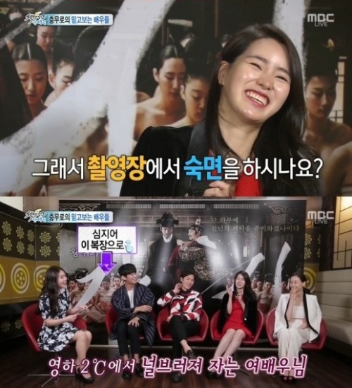 [아시아경제 온라인이슈팀] 배우 임지연이 '런닝맨'에 출연해 화제인 가운데, 과거 인터뷰 내용이 다시금 눈길을 끌고 있다. 지난해 4월 방송된 MBC 예능프로그램 '섹션TV 연예통신'에서는 영화 '간신'의 개봉에 앞서 주연배우 임지연이 주지훈 김강우와 함께 인터뷰를 하는 모습이 방송됐다. 이날 리포터가 임지연에게 "촬영장에서 잠을 많이 잔다고 하더라"고 질문하자 임지연은 "내가 사실 불면증이 심하다. 밤에 잠을 잘 못 자서 낮에 잔다"고 답했다.이에 주지훈은 "여배우가 영하 2도에서 시스루 한복을 입고 널브러져 자더라"고 폭로해 리포터를 놀라게 했다. 김강우 또한 "지연이가 불면증이 심한 것 같다"고 덧붙여 현장을 폭소케 했다. 한편 임지연은 10일 방송된 SBS 예능 프로그램 '런닝맨'에 출연해 활약했다. 온라인이슈팀 issue@asiae.co.kr<ⓒ세계를 보는 창 경제를 보는 눈, 아시아경제(www.asiae.co.kr) 무단전재 배포금지>
