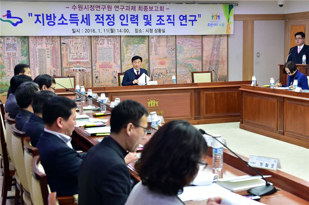 수원시가 11일 지방소득세 적정 인력 및 조직 연구 최종보고회를 가졌다. 김동근 수원시 제1부시장이 보고회를 주재하고 있다.