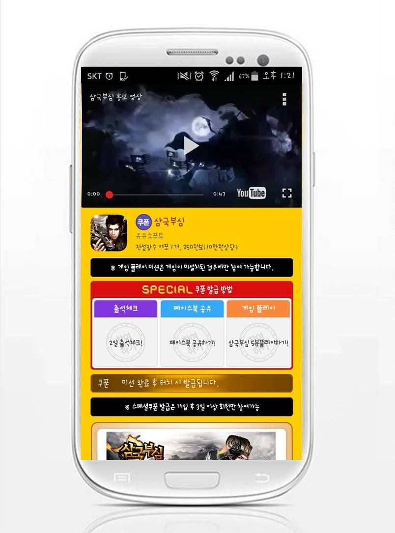 [아시아경제 온라인이슈팀] 국내 모바일 게임 시장에서 95% 이상의 점유율을 보이고 있는 모바일 게임 커뮤니티 헝그리앱이 출시한 사전등록 1위 어플리케이션 ‘모비’가 유저들이 게임을 더욱 풍성하게 즐길 수 있도록 파격적 혜택을 무료로 지급하는 스페셜 쿠폰을 추가했다. 이번에 추가한 스페셜 쿠폰은 전략 전술 RPG '삼국부심' 쿠폰으로 등록하면 전설장수 여포, 250원보 등으로 구성된 10만원 상당의 혜택을 지급한다.'삼국부심'은 유저가 삼국지 영웅들을 수집 및 배치해 3D 실사 배경의 전장에서 각종 전투를 즐기는 모바일 전략 RPG로 영웅들의 화려한 스킬과 역동적인 움직임이 주요 특징이다. 특히, 특색 있는 영웅들의 조합 방식을 제공함은 물론, 다양한 진용 시스템, 방대한 콘텐츠와 쉴 틈 없이 펼쳐지는 이벤트 등으로 기존 삼국지 게임과는 다른 재미를 경험할 수 있다.‘삼국부심'은 작년 9월 출시 후, 하루 만에 티스토어의 '신규 인기 순위 1위', '무료 베스트 게임 순위 1위'를 차지하며, 초반 흥행몰이에 성공했다. 지난 10월에는 리그 단위의 PvP(유저간 대결)를 진행할 수 있는 연무장 콘텐츠를 업데이트해 유저들에게 큰 호응을 얻고 있다.‘모비’에는 이밖에도 ‘소울앤스톤’, ‘구음진경’ 등 최신 기대작 및 ‘서머너즈워’, ‘뮤오리진’, ‘영웅’, ‘대륙’ 등의 인기 게임 업데이트 사전등록 쿠폰과 ‘이로아스’, ‘히트’, ‘난투’, ‘엔젤스톤’, ‘클래시오브킹즈’, ‘원더5마스터즈’, ‘갓오브하이스쿨’, ‘러스티블러드’, ‘크로스서머너’ 등의 무료 쿠폰 등 수백 가지 추천 게임의 쿠폰을 손쉽게 받을 수 있어 유저들의 입소문을 타면서 쿠폰 소진율이 급증해 일부 쿠폰은 조기 매진되는 등 인기를 끌고 있다.‘모비’는 주요 메뉴를 원터치로 조작할 수 있는 편의성을 앞세운 것이 특징으로, 회원 가입, 사전등록 참여, 게임쿠폰 발급, 쿠폰 나눔 등을 모두 한 번의 클릭으로 가능하도록 구현했다. 스페셜 쿠폰 론칭을 기념해 게임 업체에서 무료로 스페셜 쿠폰을 등록하고 마케팅할 수 있도록 한시적으로 프로모션을 진행 중이다.온라인이슈팀 issue@asiae.co.kr<ⓒ세계를 보는 창 경제를 보는 눈, 아시아경제(www.asiae.co.kr) 무단전재 배포금지>