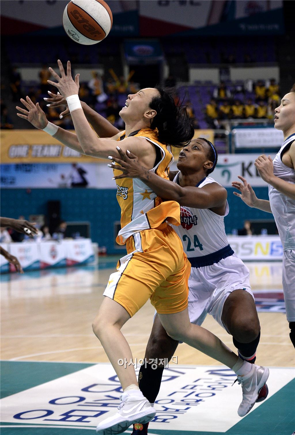 [부천=아시아경제 김현민 기자] 여자프로농구 KEB하나은행과 KB스타즈의 경기가 11일 부천실내체육관에서 열렸다. KB 변연하가 상대 모스비의 거친 수비에 공을 놓치고 있다. 김현민 기자 kimhyun81@asiae.co.kr<ⓒ세계를 보는 창 경제를 보는 눈, 아시아경제(www.asiae.co.kr) 무단전재 배포금지>
